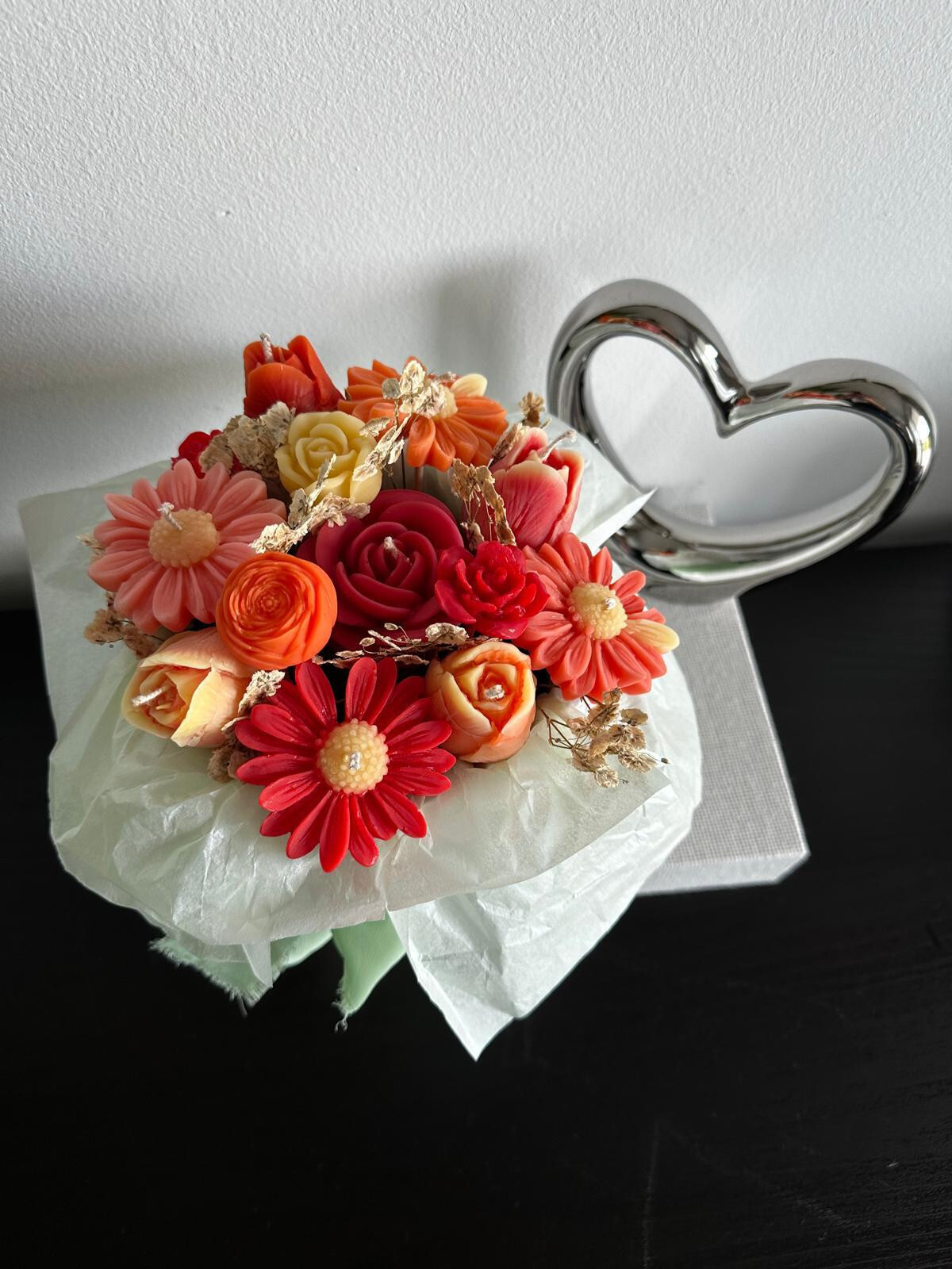 Unsere Kerzensträuße vereinen die Schönheit echter Blumen mit der Haltbarkeit der Kerzen - ideal als Geschenk, Tischdekoration oder ganz besonderer Blickfang.